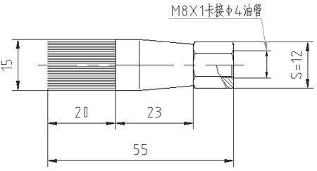進油口螺紋M8X1,卡套式聯接φ4外徑的油管。