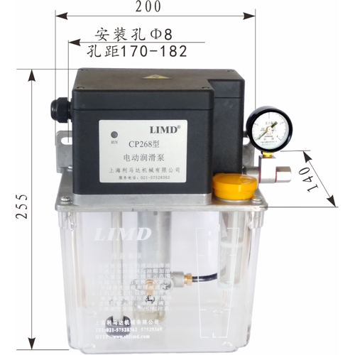 一、概述 “GP268”智能潤滑泵,內含“SK6”型控制器、自動卸荷閥、自動排氣內閥、溢流閥、低油位報警、壓力開關等,其中壓力開關使用壽命高達100萬次,屬間歇工作泵。用于需周期工作的容積式定量集中潤滑系統。泵油間歇時間設置范圍:1~999分鐘(倒計時),具有斷電記憶功能;每次泵油時間長短根據環境溫度變化、負載多少自動調整;油泵的運行時間和間歇時間均采用數碼管顯示。 工作電源:AC220v,50/60(Hz); 功率:60(w);額定壓力:2.5(MPa);額定流量:160(ml/mim); 油箱容量:4升;適用介質:N32#~N320#潤滑油。