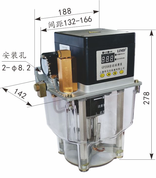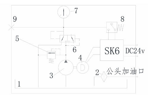 一、概述 "GP258"電動(dòng)油脂泵,內(nèi)含"SK6"型控制器、自動(dòng)卸荷閥、自動(dòng)排氣內(nèi)閥、溢流閥、油脂過(guò)濾器、攪拌及壓送油脂的螺旋槳等,屬間歇工作泵。用于需周期工作的容積式定量集中潤(rùn)滑系統(tǒng)。泵油間歇時(shí)間設(shè)置范圍:1~999分鐘(倒計(jì)時(shí)),具有斷電記憶功能;每次泵油時(shí)間長(zhǎng)短根據(jù)環(huán)境溫度變化、負(fù)載多少自動(dòng)調(diào)整;油泵的運(yùn)行時(shí)間和間歇時(shí)間均采用數(shù)碼管顯示。 工作電源:DC24v; 功率:120(w);額定壓力:5.0(MPa);額定流量:120(ml/mim); 油箱容量:2升;適用介質(zhì):000#、00#、0#油脂。 二、工作原理 “GP258”電動(dòng)油脂泵工作原理:將間歇時(shí)間設(shè)定后,即進(jìn)入間歇倒計(jì)時(shí)狀態(tài),中途斷電再次通電后繼續(xù)遞減計(jì)時(shí),累計(jì)計(jì)滿(mǎn)預(yù)設(shè)的間歇時(shí)間。"SK6"型控制器確認(rèn)常開(kāi)型壓力開(kāi)關(guān)8復(fù)位的前提下(斷態(tài)信號(hào),通態(tài)報(bào)警),控制電機(jī)4運(yùn)轉(zhuǎn)驅(qū)動(dòng)齒輪泵3泵油,經(jīng)自動(dòng)換向閥6壓送至輸出口9輸往潤(rùn)滑系統(tǒng)。當(dāng)系統(tǒng)分油結(jié)束,壓力上升到壓力開(kāi)關(guān)動(dòng)作壓力時(shí),“SK6”型控制器指令油泵電機(jī)繼續(xù)運(yùn)轉(zhuǎn)10秒鐘(這是保壓時(shí)間,可調(diào))。期間系統(tǒng)壓力穩(wěn)定到溢流閥5的調(diào)定壓力(保壓)。停泵時(shí),換向閥6在差壓信號(hào)的作用下恢復(fù)至左位機(jī)能,溝通主管路卸荷通道,系統(tǒng)壓力卸壓。額定壓力由調(diào)壓閥5控制,壓力表7顯示。 三、電氣接線(xiàn)說(shuō)明 1、電源引線(xiàn)端接到DC24V電源,必須長(zhǎng)供電,否則功能休止; 2、聯(lián)控輸出(常開(kāi)常閉可選擇)接到主機(jī)控制端。不需要聯(lián)控主機(jī)工況的可讓其懸空。 四、使用與調(diào)整 1.參考“電氣接線(xiàn)說(shuō)明”連接。只要接通電源,綠色“電源燈”常亮;當(dāng)油泵電機(jī)處于運(yùn)轉(zhuǎn)狀態(tài),綠色“運(yùn)行燈”閃爍;當(dāng)油泵電機(jī)處于停止?fàn)顟B(tài),黃色“間歇燈”閃爍;當(dāng)紅色“故障燈”閃爍且數(shù)碼管顯示 :“-E2”時(shí)表示卸壓故障(壓力開(kāi)關(guān)沒(méi)有復(fù)位,處于通態(tài)信號(hào)),“-E3”時(shí)表示上次泵油時(shí)欠壓故障(低壓力報(bào)警,壓力開(kāi)關(guān)沒(méi)有發(fā)出通態(tài)信號(hào))。 2.油泵按鍵說(shuō)明 2.1復(fù)位鍵,按此鍵完成一次完整的工作循環(huán)。完整的工作循環(huán)是:①檢測(cè)壓力開(kāi)關(guān)是否復(fù)位,沒(méi)復(fù)位則報(bào)警顯示“-E2”,復(fù)位則進(jìn)入第二階段;②啟動(dòng)油泵泵油,從設(shè)定的最長(zhǎng)泵油時(shí)間開(kāi)始倒計(jì)時(shí),期間如果一直沒(méi)有壓力開(kāi)關(guān)的通態(tài)信號(hào),則報(bào)警并顯示“-E3”,當(dāng)系統(tǒng)壓力達(dá)到壓力開(kāi)關(guān)動(dòng)作值時(shí),即進(jìn)入第三階段;③保壓階段,保壓時(shí)間倒計(jì)時(shí)歸零,進(jìn)入第四階段;④待機(jī)階段,計(jì)滿(mǎn)間歇時(shí)間開(kāi)始下一循環(huán)。 2.2增加鍵,當(dāng)進(jìn)入相應(yīng)設(shè)置狀態(tài)后,數(shù)碼管閃爍顯示對(duì)應(yīng)的時(shí)間設(shè)定值,按此鍵對(duì)應(yīng)的時(shí)間設(shè)定值將累加1。 2.3減少鍵,當(dāng)進(jìn)入相應(yīng)設(shè)置狀態(tài)后,數(shù)碼管閃爍顯示對(duì)應(yīng)的時(shí)間設(shè)定值,按此鍵對(duì)應(yīng)的時(shí)間設(shè)定值將累減1。 2.4點(diǎn)動(dòng)鍵,在工作狀態(tài)時(shí),點(diǎn)按此鍵結(jié)束當(dāng)前工作;在間隔狀態(tài)時(shí),按此鍵則進(jìn)入點(diǎn)動(dòng)工作狀態(tài),數(shù)碼管累加顯示工作秒數(shù)。 3.工況設(shè)置(各類(lèi)時(shí)間設(shè)置) 3.1 設(shè)置間歇時(shí)間:在間歇狀態(tài)下長(zhǎng)按增加鍵5秒進(jìn)入間隔時(shí)間調(diào)整狀態(tài),松開(kāi)按鍵。再點(diǎn)按增加鍵或減少鍵來(lái)調(diào)整需要的間隔時(shí)間值,當(dāng)目標(biāo)值出現(xiàn)即松開(kāi)按鍵,10秒后生效,可調(diào)整范圍為1-999分鐘。 3.2 設(shè)置最長(zhǎng)泵油時(shí)間:在間隔狀態(tài)下同時(shí)按住增加鍵和減少鍵5秒,進(jìn)入最長(zhǎng)時(shí)間調(diào)整狀態(tài)界面,松開(kāi)按鍵。再點(diǎn)按增加鍵或減少鍵來(lái)調(diào)整需要的最長(zhǎng)泵油時(shí)間值,當(dāng)目標(biāo)值出現(xiàn)即松開(kāi)按鍵,10秒后生效。 3.3 設(shè)置保壓時(shí)間:在間隔狀態(tài)下,先按住減少鍵不松開(kāi)再同時(shí)按住點(diǎn)動(dòng)鍵5秒,直到數(shù)碼管閃爍,松開(kāi)按鍵。再點(diǎn)按增加鍵或減少鍵來(lái)調(diào)整需要的保壓時(shí)間值,當(dāng)目標(biāo)值出現(xiàn)即松開(kāi)按鍵,10秒后生效,可調(diào)整范圍為0-60秒鐘。 4.注意事項(xiàng) 4.1 必須經(jīng)過(guò)加油過(guò)濾器加入規(guī)定牌號(hào)的潤(rùn)滑油,加入量應(yīng)在油標(biāo)規(guī)定的范圍內(nèi)。 4.2 要注意電源線(xiàn)極性,如果正負(fù)極接反了,電源指示燈不亮,螺旋槳和泵芯反轉(zhuǎn)。螺旋槳和泵芯的轉(zhuǎn)向是一樣的,從油泵的上面往下看,順時(shí)針旋轉(zhuǎn)是正確的,逆時(shí)鐘旋轉(zhuǎn)是反轉(zhuǎn)。 4.3 